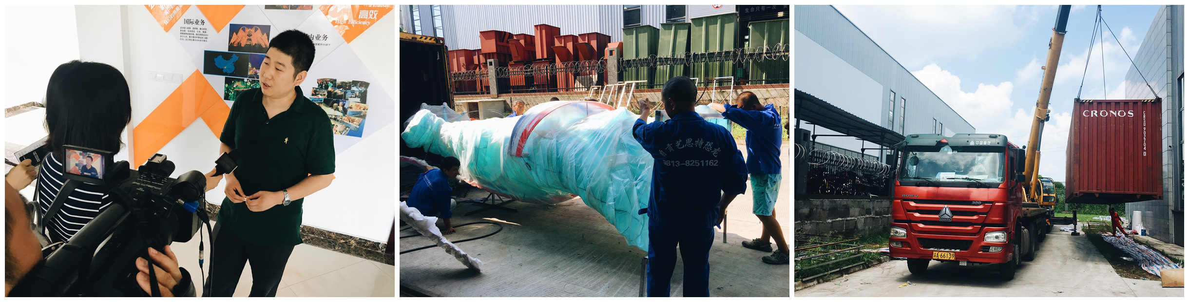 (自貢電視臺記者對自貢市燈貿(mào)集團(tuán)股份有限公司國韻公司總經(jīng)理李斌進(jìn)行采訪) (工作人員對彩燈進(jìn)行裝箱) (運(yùn)輸車正在裝載集裝箱)