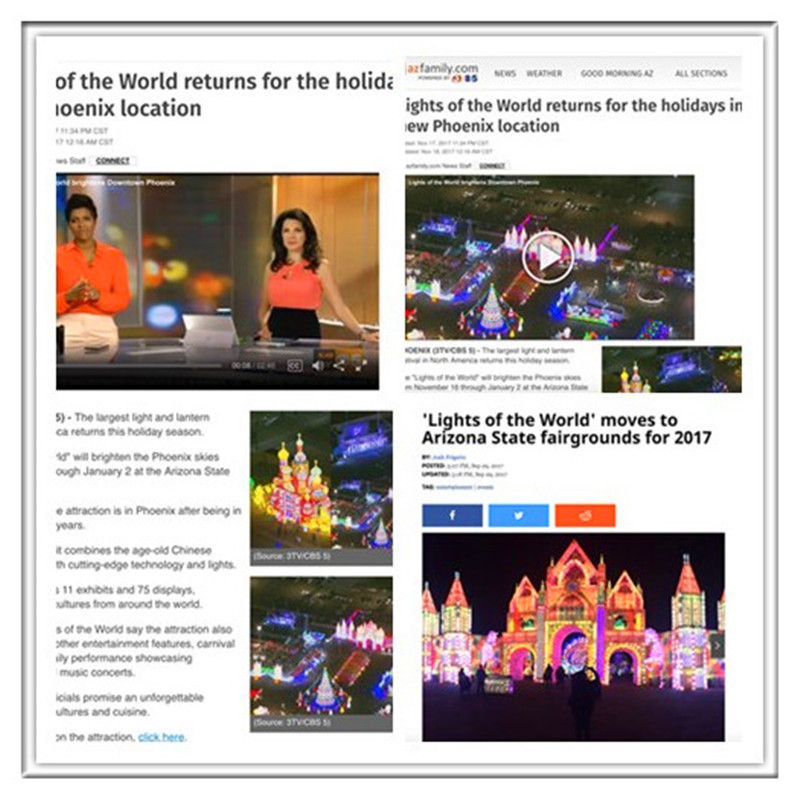 開幕式上菲尼克斯印第安原住民、拉丁裔、華人、墨西哥等各族裔文化藝術(shù)團(tuán)體表演了豐富多彩的歌舞節(jié)目,展示了菲尼克斯多元文化風(fēng)采。瑰麗的花燈、燦爛的民間藝術(shù)和強(qiáng)大的演出陣容,園內(nèi)數(shù)千名美國觀眾無不歡呼雀躍、拍手稱奇。美國亞利桑那州各大主流媒體、華人媒體全面采訪報(bào)導(dǎo)了燈會(huì)開幕式盛況。菲尼克斯當(dāng)?shù)匦侣劇?Now @ 6 》報(bào)道稱“2017世界之光彩燈嘉年華是北美最大的彩燈節(jié),是全球文化集合地,游客仿佛置身于迪士尼中?!?
