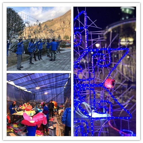 造型、切割、捆扎,機聲轟鳴,焊華飛濺,東方彩燈追夢人櫛風(fēng)沐雨,任勞任怨,勤勞靈動的雙手從一個冬天,伸向另一個冬天,只為東方彩燈明媚汶川的春天?!洞髳蹮o疆》、《鳳凰涅槃》、《姜維城》、《大禹治水》、《格?;ㄩ_》、《康養(yǎng)汶川》等富含汶川民族文化和歷史底蘊特色的燈組已顯雛形。2018年新春,汶川將以半城青山半城燈的恢宏氣勢和璀璨絢爛向祖國和人民展示災(zāi)后重建十周年的瑰麗畫卷。