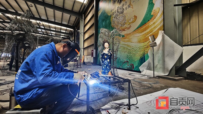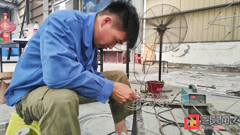 8月10日下午,記者走進(jìn)自貢燈貿(mào)集團(tuán)股份有限公司生產(chǎn)車間,專訪燈貿(mào)集團(tuán)“唐風(fēng)華韻”展品項(xiàng)目。4名彩燈造型師就像魔術(shù)師一般,讓手中冰冷鋼絲,變成了栩栩如生的造型。“從7月中旬以來,我們就開始進(jìn)場施工,工作時(shí)并不覺得熱,常常引來一旁同事的關(guān)心?!痹?0多度的高溫下,38歲的彩燈造型師楊勝平因?yàn)樘度雱?chuàng)作,衣服濕了又穿干,還全然不知。