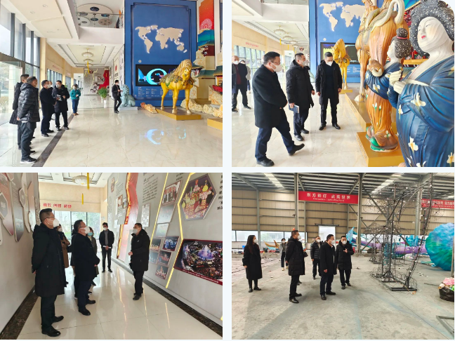 立法調(diào)研組一行人在集團執(zhí)行總裁陶建軍陪同下首先參觀了集團公司大廳展陳精品燈組“唐風華韻”。隨后來到東方彩燈出口基地生產(chǎn)車間,第29屆自貢國際恐龍燈會燈貿(mào)集團承制燈組的制作現(xiàn)場,詳細了解了本屆燈會燈組制作的相關(guān)情況。